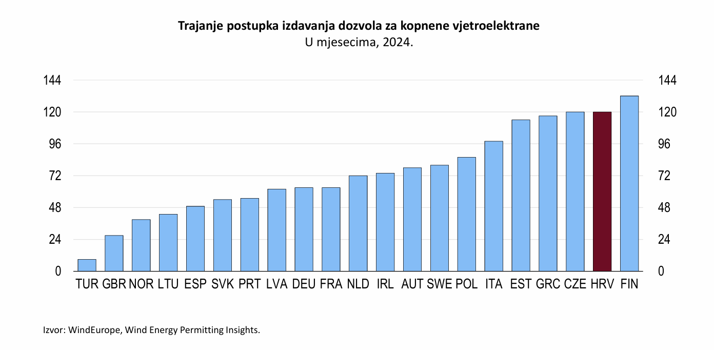 Vlada razmatra uspostavu posebnih zona za ubrzani razvoj obnovljivih izvora s unaprijed osiguranim priključkom na mrežu. Za dodatno skraćivanje rokova potrebno je jačati administrativne kapacitete te pojednostaviti postupke – primjerice, ublažavanjem pojedinih okolišnih procedura, kao u Njemačkoj. Uspostava „one-stop-shop“ sustava za izdavanje dozvola smanjila bi administrativno opterećenje proizvođača. Uvođenje jasnih rokova za lokalna tijela te pravila „šutnja znači odobrenje“, kao u Italiji za male OIE projekte, dodatno bi ubrzalo postupke.